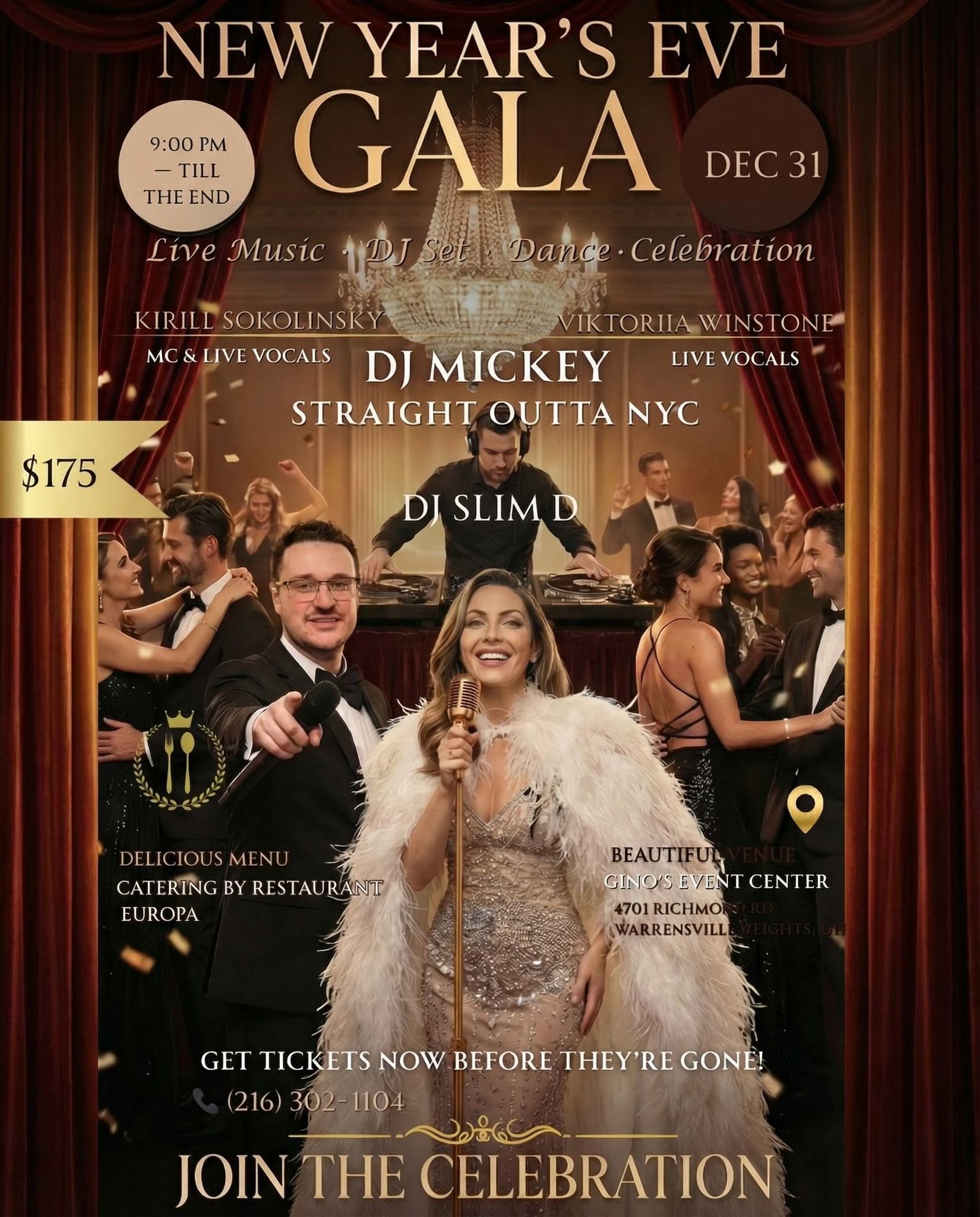 Ring in the New Year 2025 - 2026 with Gino's Event Center and the Cleveland Ballet Theatre with DJ Kiril, Viktoria Winstone, and DJ Mickey straight out of NYC!